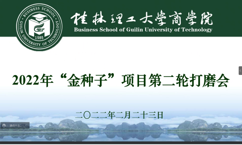 2月23日下午,商学院在线上开展2022年“金种子”项目第二轮打磨会。商学院副院长王兴中,学院创新创业导师罗薇、沈鸿、周子元,校团委科技实践部相关负责老师及项目团队成员参加了此次打磨会。