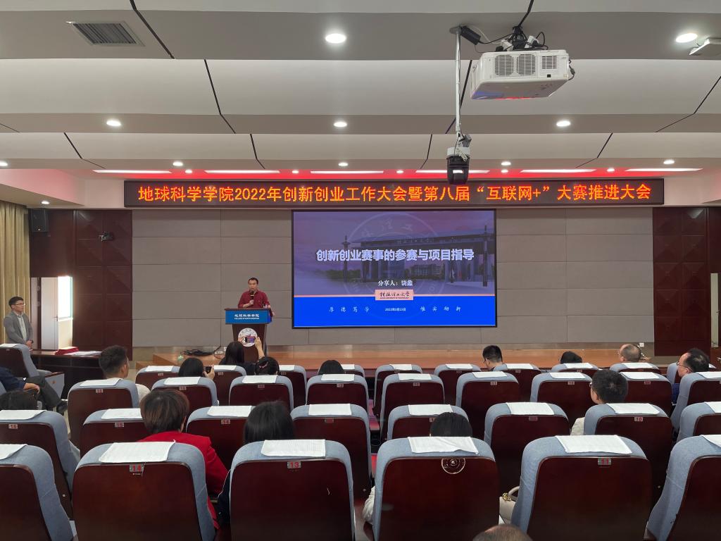 校团委副书记饶蠡代表学校团委作创新创业赛事项目指导,他表示,学校将创新创业工作纳入学校十四五发展规划,推动实施创新创业教育“六金”计划,学院要发挥学科优势、强化平台建设,积极探索产学研一体化发展新路径。随即以双创教育为切入点,从不同的角度解释了创新创业比赛的意义,通过典型案例从各项重大赛事解读、项目要求、参赛项目的选择途径、参赛项目材料准备、参赛项目辅导、参赛和路演建议等几个方面进行了深入浅出的讲解。