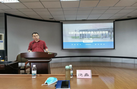 校团委饶蠡副书记代表学校团委作创新创业赛事项目指导,他表示,学校将创新创业工作纳入学校十四五发展规划,推动实施创新创业教育“六金”计划,学院要发挥学科优势、强化平台建设,积极探索产学研一体化发展新路径。随即以双创教育为切入点,从不同的角度解释了创新创业比赛的意义,通过典型案例从各项重大赛事解读、项目要求、参赛项目的选择途径、参赛项目材料准备、参赛项目辅导、参赛和路演建议等几个方面进行了深入浅出的讲解。