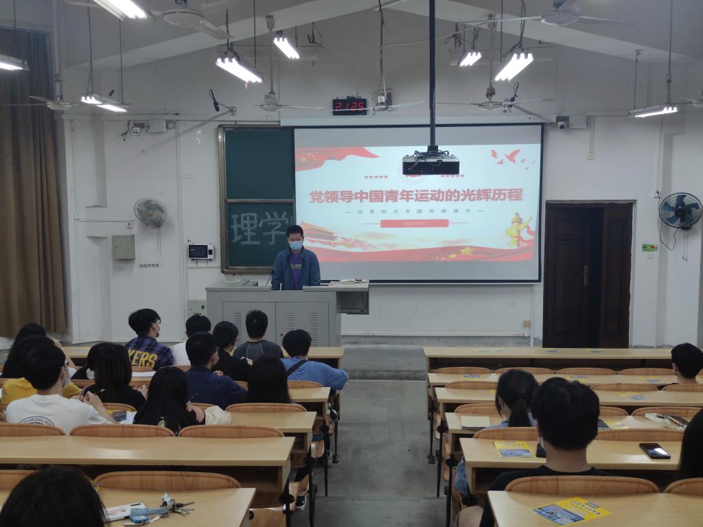 为深入了解党领导中国青年运动的光辉历程,4月27日晚,理学院在04110教室组织开展"党的青年运动史"专题学习活动,学院团学骨干参加专题学习会,专题学习由学院舒强老师主讲。