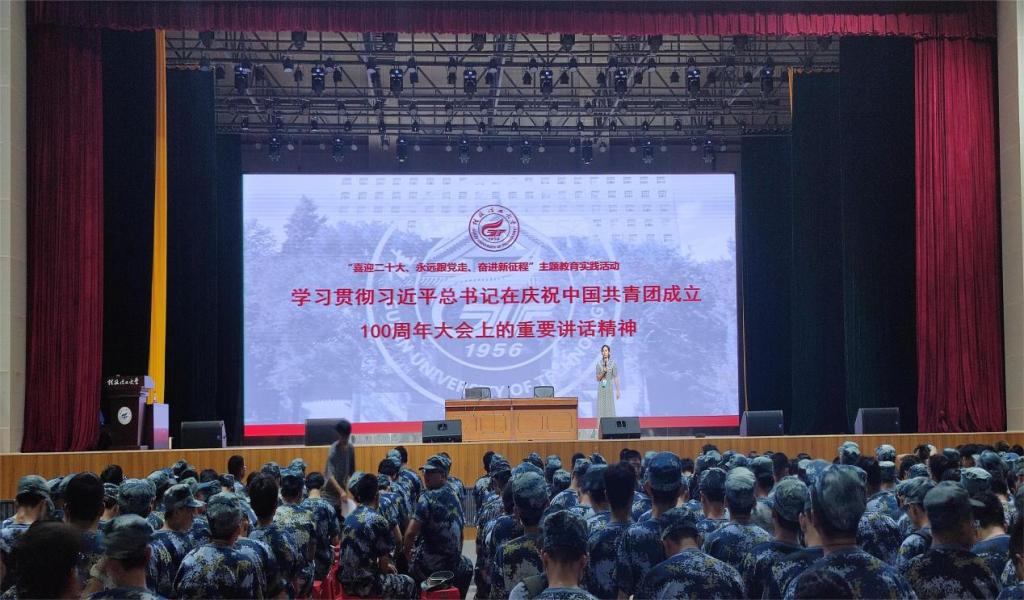 围绕“喜迎二十大、永远跟党走、奋进新征程”主题教育实践活动,9月15日-20日,环境科学与工程学院青年讲师团成员李心愿面向全体新生开展学习宣传贯彻习近平总书记在庆祝中国共产主义青年团成立100周年大会上的重要讲话精神主题报告。