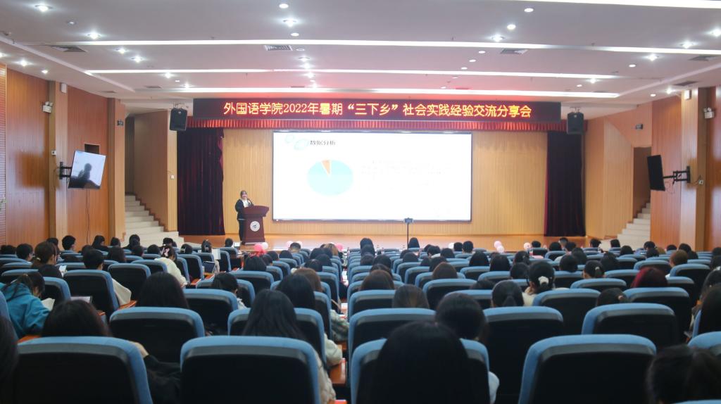 为做好外国语学院暑期“三下乡”社会实践总结工作,扩大实践过程和成果的宣传范围,提升实践育人功效,4月7日晚,外国语学院在太阳集团城网站2017雁山校区图书馆报告厅举行“学习二十大 永远跟党走 奋斗新征程”三下乡经验交流分享会。学院姚倩老师、袁聂梅老师、学院所有暑期实践队伍和学生代表等参加了此次活动。