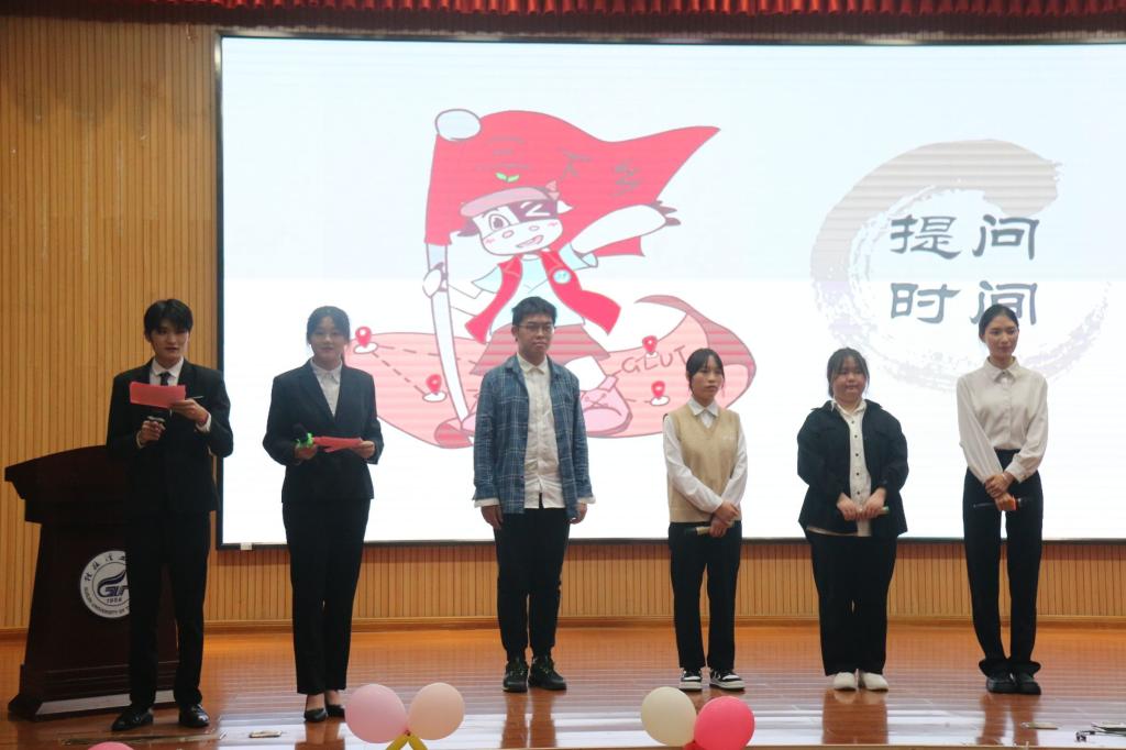 会上,各学院实践服务队代表依次从团队建设、活动开展、服务保障、宣传报道、成果展示等方面汇报了暑期社会实践开展情况,分享实践过程中的成长与收获、感悟与感动,以生动鲜活的实例诠释着外院青年用脚步丈量祖国大地,用眼睛发现中国精神,用耳朵倾听人民呼声,用内心感应时代脉搏的奋斗与担当。“城市景观标语纠错”实践团石雪芝就城市文化标识语上台分享,她向同学们介绍了活动期间通过实地走访旅游景点与公共服务场所,对完善城市标语的系统探讨,并讲解了其学习模式和技巧经验;“全州义务支教”实践团贺柏明媚上台向大家分享了他们开展乡村英语启蒙教育,激发留守儿童英语学习兴趣的故事;“关爱夕阳,科普敬老”社会实践团李亮向大家介绍了他们探望养老院与走访社区活动的所见所闻,并分享了他在实践学习中的经验和感受;“阳朔青空间”实践团秦嘉励向大家介绍了他们在金宝中心小学“资困助学爱心行,青春创业复兴路”的实践活动。会议过程中还穿插着问答环节,同学们踊跃参与,主讲嘉宾对观众们的提问一一耐心解答。