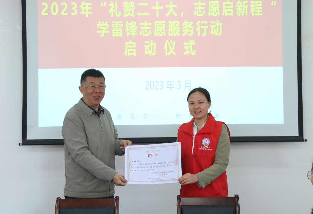 为深入学习宣传贯彻党的二十大精神,深入学习习近平总书记在全国第60个学雷锋日暨第24个中国青年志愿者服务日来临之际对开展学雷锋活动作出的重要指示,机械与控制工程学院于3月14日上午在雁山07215举行学院学雷锋44118太阳成城集团站揭牌暨2023年“礼赞二十大,志愿启新程”学雷锋44118太阳成城集团行动启动仪式,学院党委书记李治、校团委副书记饶蠡、学院党委副书记王迎波出席本次仪式,校团委社团文化部部长、学院党建组织员、学工组组长、团委书记、全体辅导员、学生代表参加仪式,仪式由学院团委书记黎云鹏主持。
