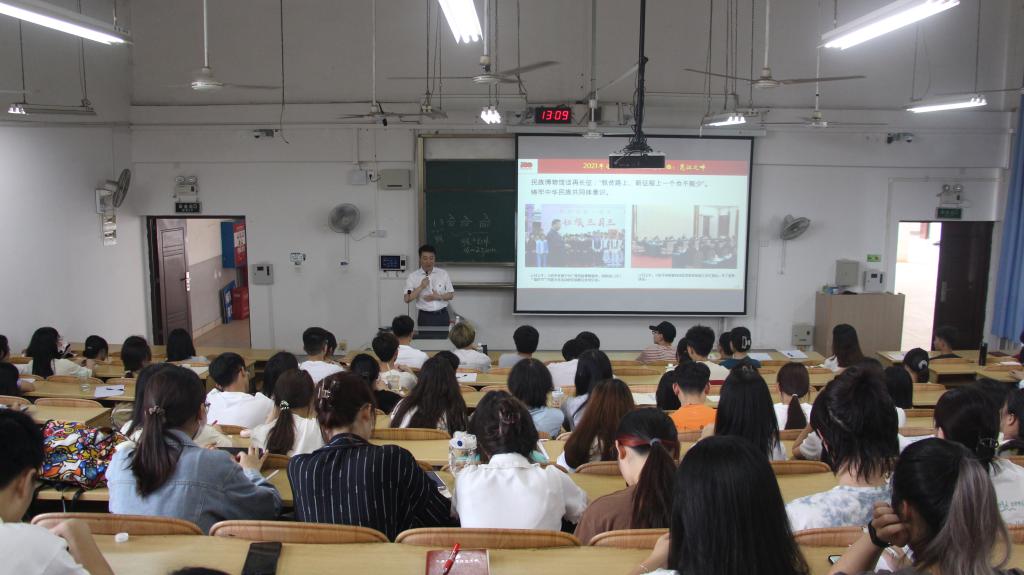 彭正波院长首先点明了本次培训主题:牢记总书记嘱托奋力开创新时代壮美广西建设新局面。并从以下三方面进行了讲解,一是深刻感悟习近平总书记的关心厚爱,带领我们感受习近平总书记的广西情结;二是回顾习近平总书记视察广西的足迹,点出了重要时间点;三是学习贯彻习近平总书记的重要讲话精神,身为桂工学子要深刻领悟讲话精神,准确把握核心要义。同时用轻松的方式与现场的同学们分享了学习体会,交流思想感悟,并对同学们提出殷切期望,激励同学们朝着习近平总书记的要求的“聚心聚力建设新时代中国特色社会主义壮美广西”而奋斗。