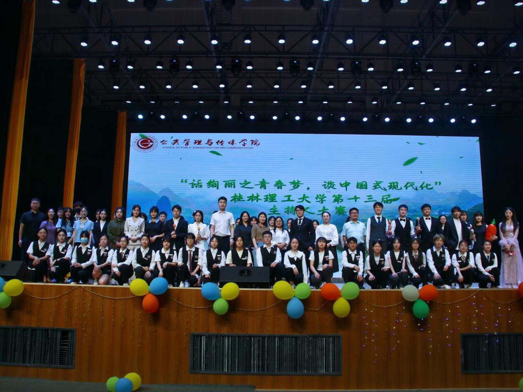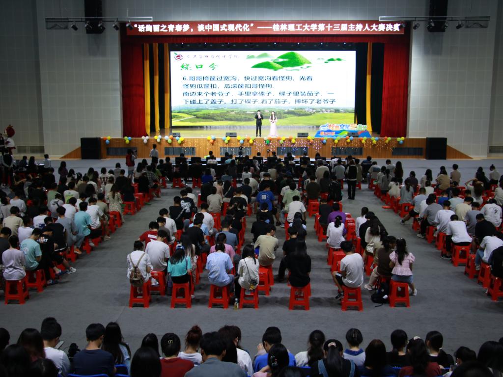 2023年5月19日晚,以“话绚丽之青春梦,谈中国式现代化”为主题的太阳集团城网站2017第十三届主持人大赛在雁山校区新体育馆圆满落幕。校团委副书记莫媛、公共管理与传媒学院党委副书记杨晓、桂林电视台主持人葛辉、桂林晚报资深媒体记者韦彦青,校党委宣传部、学生工作部(处)、校团委相关负责人以及各学院辅导员应邀出席。