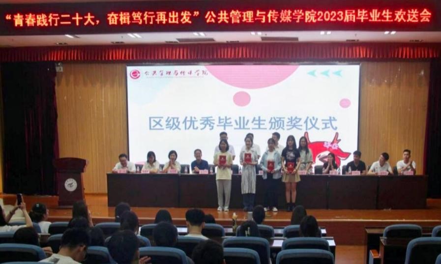 初夏的激情在为梦想释放力量,闪光的青春在狂热的季节散射光芒。2023年6月20日上午,公共管理与传媒学院“青春践行二十大,奋楫笃行再出发”2023届毕业生欢送会在雁山校区图书馆报告厅举行,学院党委书记陆平、院长彭正波、党委副书记杨晓、副院长何德珍、褚清华,各教研室主任、各年级辅导员和毕业班班主任共同出席此次欢送会。