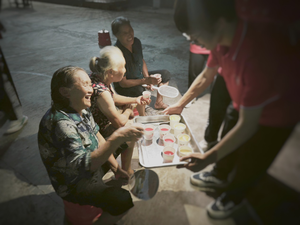 7月12日,夜幕降临,乡村、田野、树木、小河也渐渐地模糊不清。偶尔从大源村村委大院中,传来一阵阵老人和小孩的喧闹声。循声望去,在朦胧的月光中,一场红色主题的乡村露天电影正在悄然上映,一个个身着红色志愿服身影的实践团成员穿梭其中,为观影村民提供清凉、解暑、甘甜的“饮料”。
