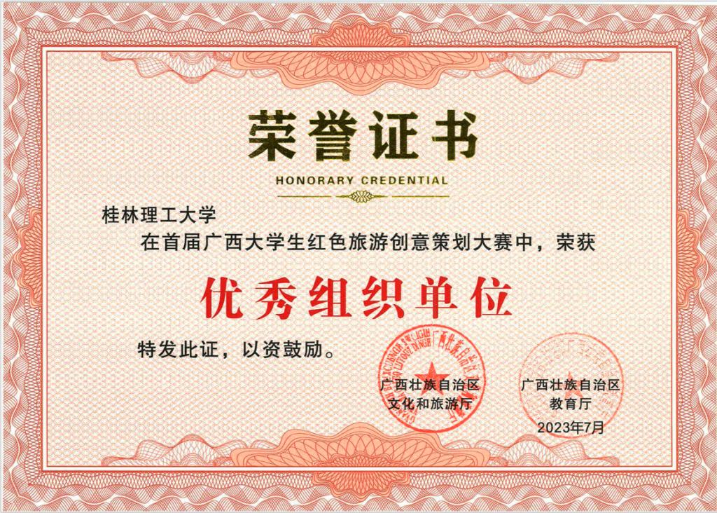 太阳集团城网站2017在首届广西大学生红色旅游创意策划大赛中荣获“优秀组织单位”