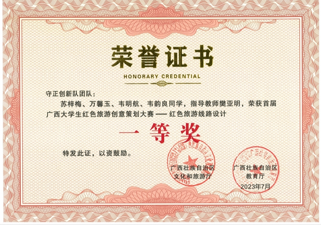 据悉,广西大学生红色旅游创意策划大赛由自治区文化和旅游厅、自治区教育厅联合主办,以“青春心向党 筑梦新时代”为主题,旨在培养应用型创新人才,助推旅游成果转化,促进旅游教育高质量发展,为旅游企业创新旅游产品提供新思路。