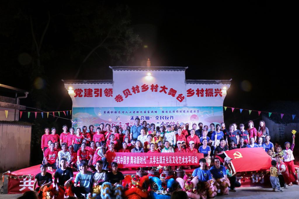 为保证本次晚会节目质量,提高当地文化艺术水平,晚会前期,公共管理与传媒院精心挑选文艺志愿者多次前往活动地点针对广场舞阿姨们的舞蹈动作、队形编排等方面给出指导,充分发挥志愿者模范作用。在活动当天,公共管理与传媒学院的志愿者早早的来到现场,协助村民们布置晚会场地、帮阿姨化妆、拍摄并主动维持现场秩序,保证了本次活动晚会有序、顺利地进行。