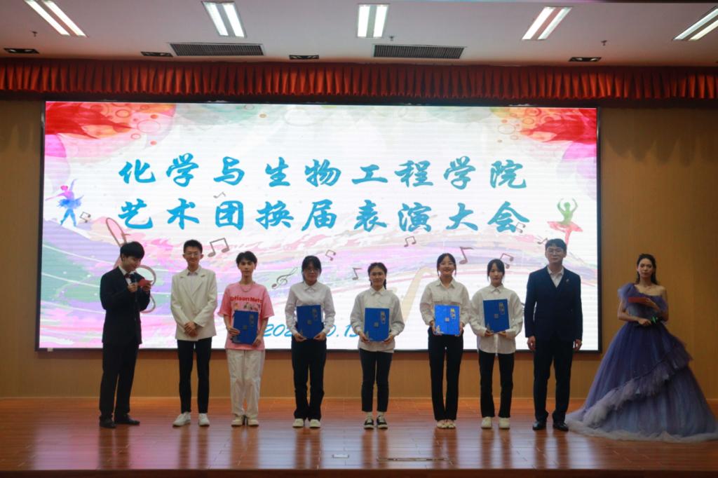 为了加深新成员对艺术团的认识,保持社团文化的发展和连续性,增强队员之间的交流和沟通,促进团队合作精神的培养,增进队伍之间的凝聚力,提升社团的活力、创新能力、社团凝聚力和团队合作精神。我院于2023年9月25日下午15:30在图书馆报告厅举办了以“励志、自强、务真、求实”为主题的化生学院艺术团换届表演大会。校大学生艺术团学生代表、学院团委学生会融媒体中心和艺术团学生骨干、消防车乐队、南棠剧社以及各学院艺术团学生代表参加此次大会,共计200余人出席。