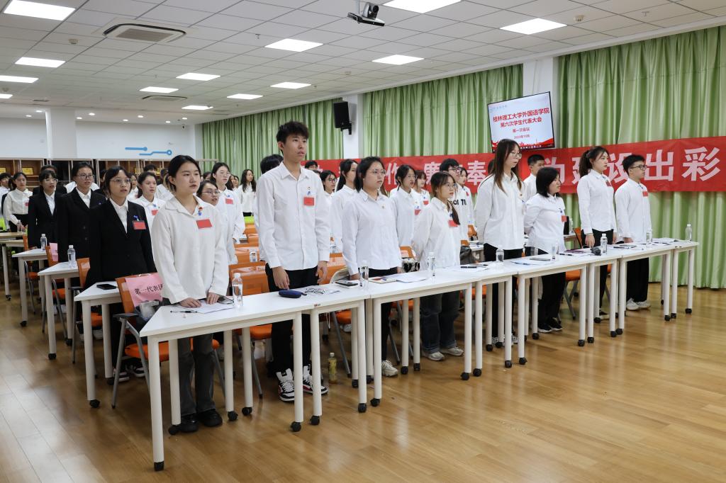 10月27日下午,我院在雁山校区15205会议室召开学院第六次学生代表大会,校团委副书记慕宗良、学院党委副书记邓洁琼、学院团委书记舒强、校学生会主席团成员赵竹瑶等嘉宾出席本次大会,大会由学院陈小云同学主持,学院65名学生代表参加了本次大会。