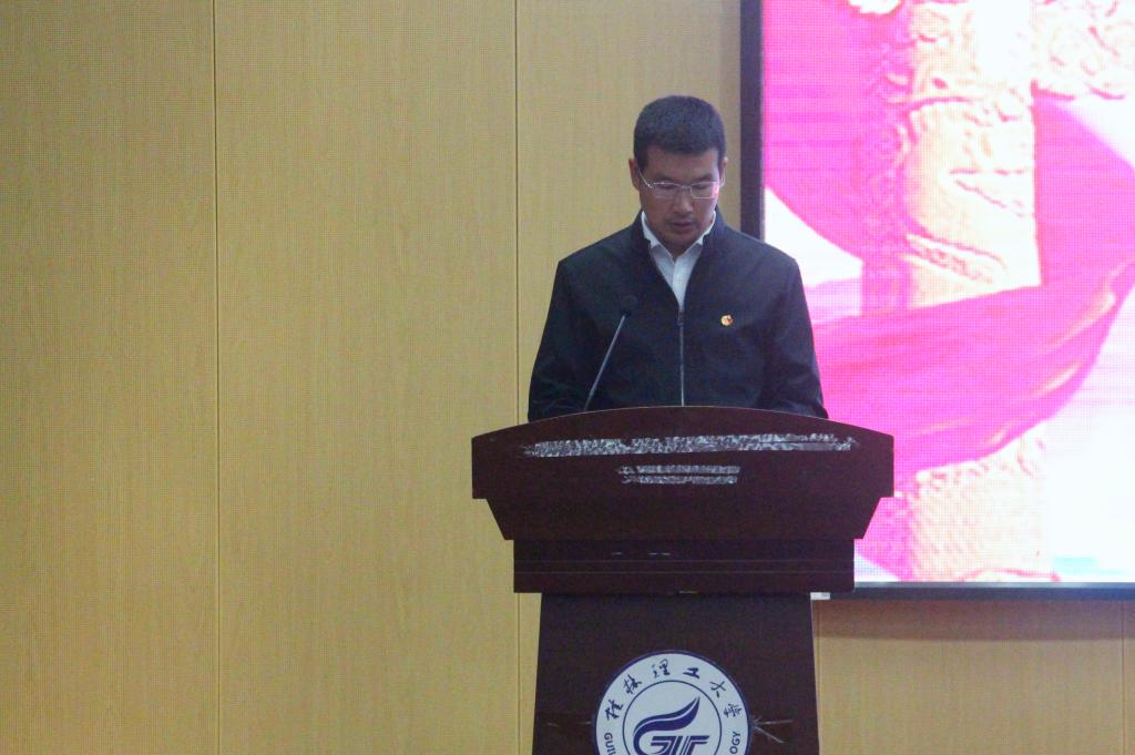 大会第一项,学校团委高昌洪老师代表校团委致辞。他充分肯定了我院团委、学生会长期的工作成果和为学校学生事业做出的贡献以及拼搏进取、奋发有为的精神,并提出了三点希望:一是希望学生会要坚定不移听党话、跟党走;二是希望学生会要勇于作为敢担当、能吃苦,进一步激发新时代学生会组织的生机活力,敢想敢为,善作善成,满腔热情地做好服务同学的工作;三是希望学生会要自律自强作风严、肯奋斗,以脚踏实地的严实作风为广大桂工学子做出表率,为党的青年工作做出积极贡献。