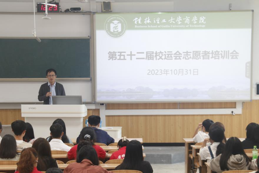 为保障第52届校运会顺利举办,10月31日中午,商学院于雁山校区06102和06104教室召开运动员动员大会和志愿者工作培训会。商学院团委负责人、年级辅导员出席会议,全体运动员、志愿者以及相关工作人员到场参加了本次大会。
