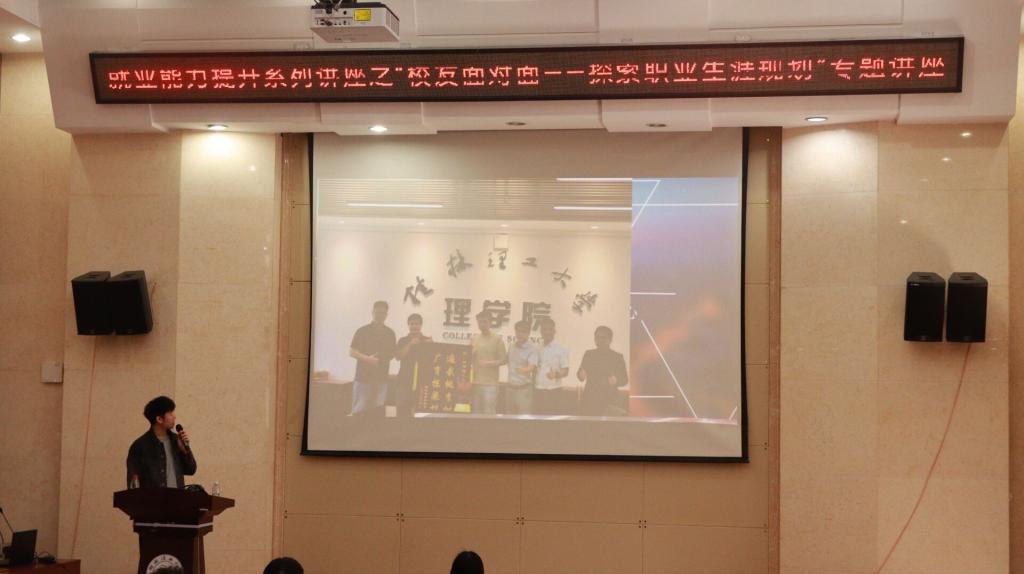 为助力学生做好职业生涯规划,进一步提升学生就业创业能力、掌握求职技巧,5月13日上午,理学院于萃华楼报告厅举办了“就业大讲堂·青年榜样进校园”主题讲座。本次讲座邀请了学院2017届校友、思考乐教育汇海分校校长马誉其老师为同学们做分享,学院20-22年级部分学生参加了此次讲座,讲座由学院辅导员林玉梅老师主持。