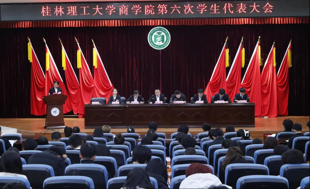12月3日下午,商学院第六次学生代表大会在雁山校区图书馆报告厅顺利召开。学院党委副书记饶蠡、校团委高昌洪老师、学院团委书记宋海民、学院学生会指导老师赵宇飞和校学生会主席团成员孙紫琦出席大会,学院第五届学生会主席团全体成员和110名学生代表参加大会。