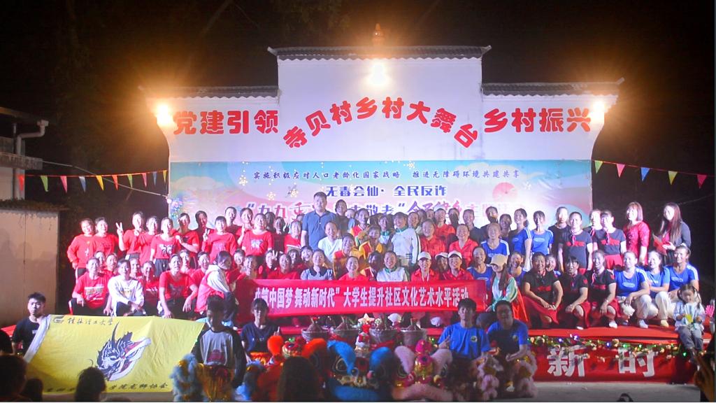为发扬中华民族敬老爱老的传统美德、丰富和发展传统龙狮文化,10月23日,太阳集团城网站2017信息科学与工程学院龙狮协会的同学们,在于帅帅老师的带领下,来到了会仙镇乡村振兴晚会的现场,为会仙社区的居民带来了一场热闹非凡、震撼人心的龙狮展演活动。