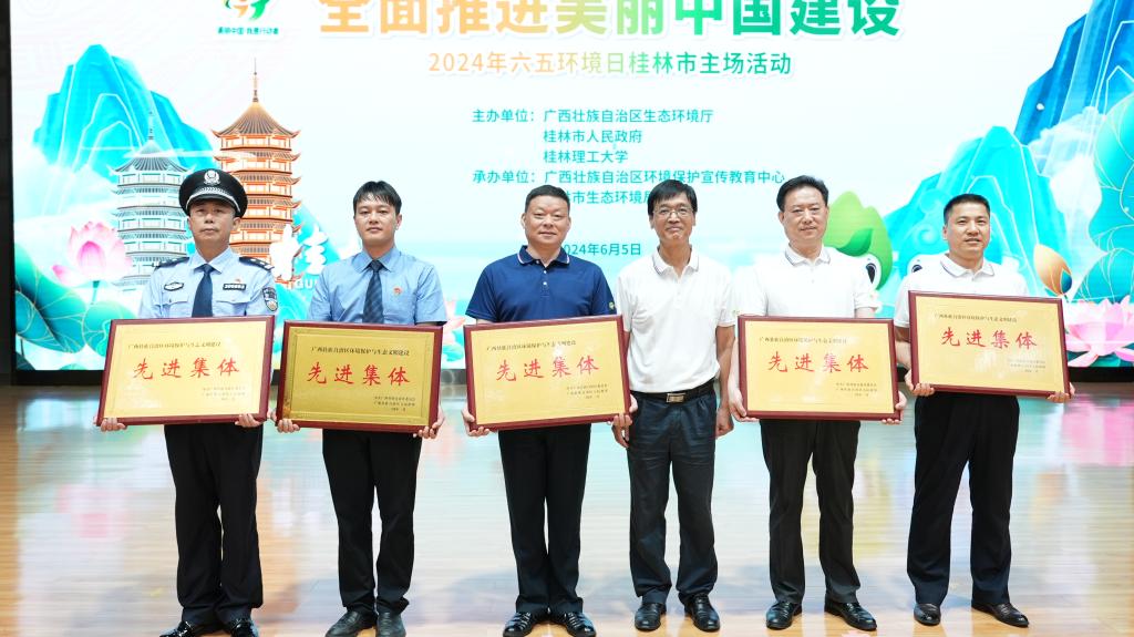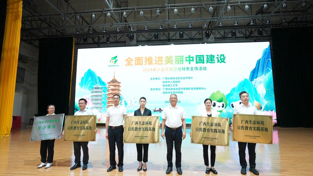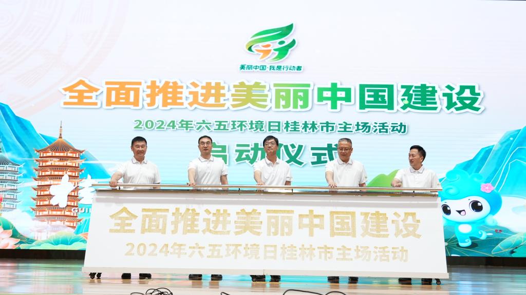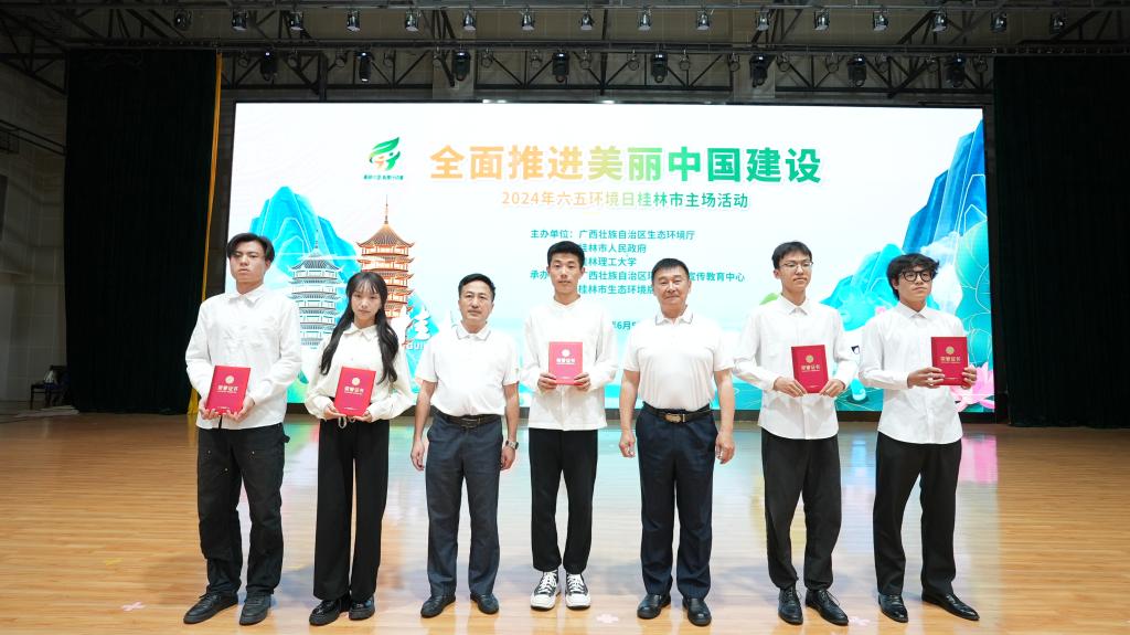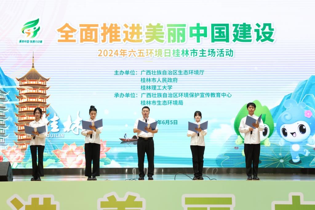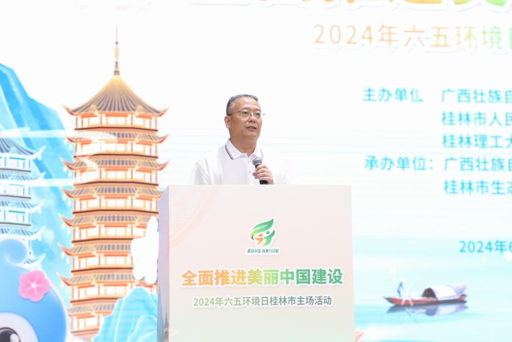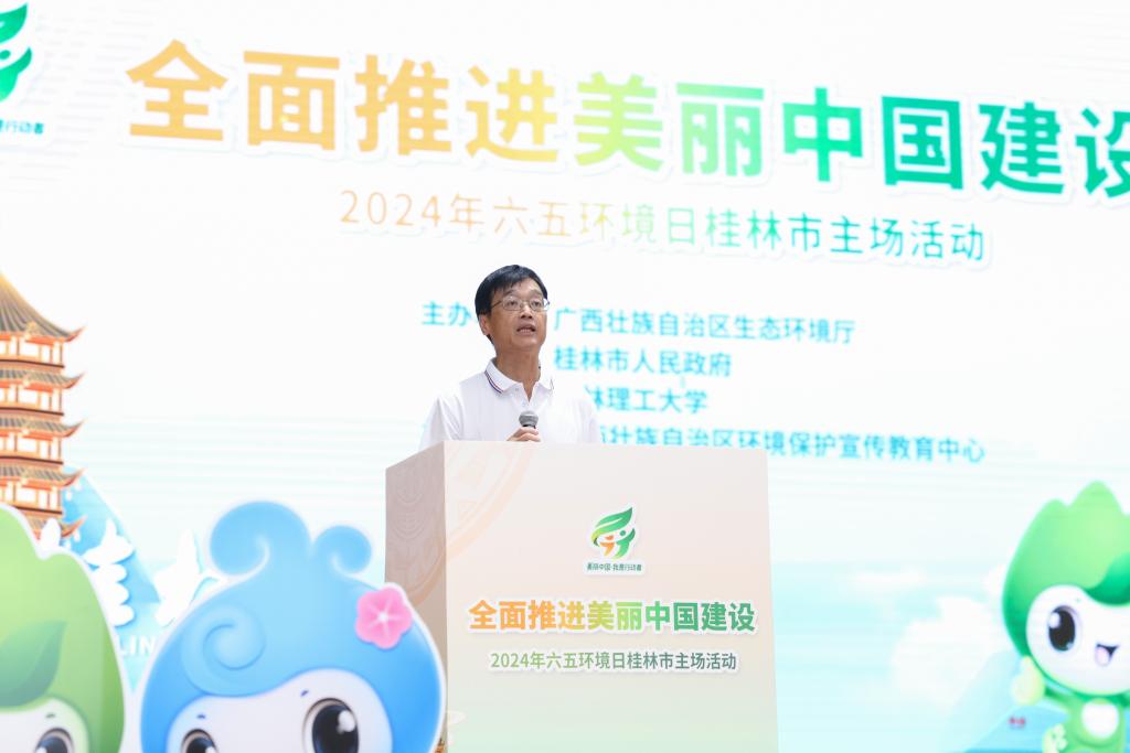 在第53个世界环境日到来之际,6月5日上午,由自治区生态环境厅、桂林市人民政府、太阳集团城网站2017主办的全面推进美丽中国建设——2024年六五环境日桂林市主场活动在太阳集团城网站2017雁山校区综合体育馆举行。桂林市人民政府二级巡视员周作智,太阳集团城网站2017校长王敦球,党委常委、宣传部部长叶昊,桂林市生态环境局局长张晓阳,自治区桂林生态环境监测中心主任蒋永光出席活动,桂林市相关部门负责人,有关企业代表,获奖代表,太阳集团城网站2017相关部门负责人、师生代表,媒体记者,桂林市环保社会组织、环保志愿者代表约350余人参加本次活动。