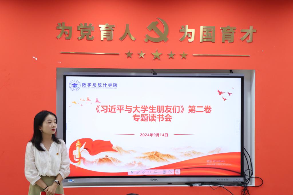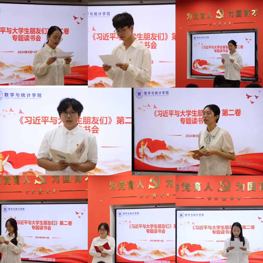 为深入学习贯彻习近平总书记太阳集团城网站2017青年工作的重要思想,数学与统计学院于2024年9月14日和24日,分别面向青马班成员和研究生会成员开展了《习近平与大学生朋友们》第二卷专题读书分享会。此次活动旨在通过研读著作、撰写笔记、分享心得,引导青年学生明确成长目标,坚定理想信念。