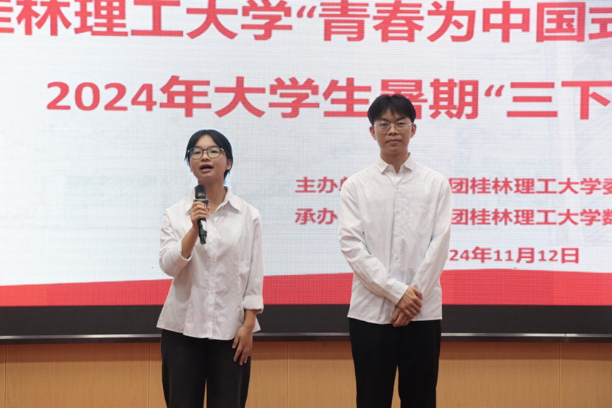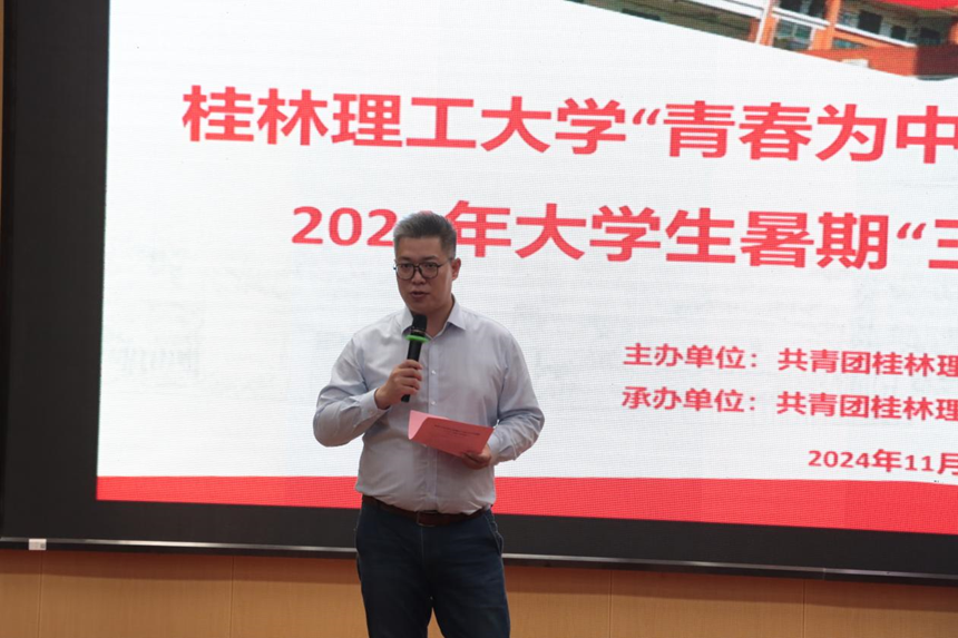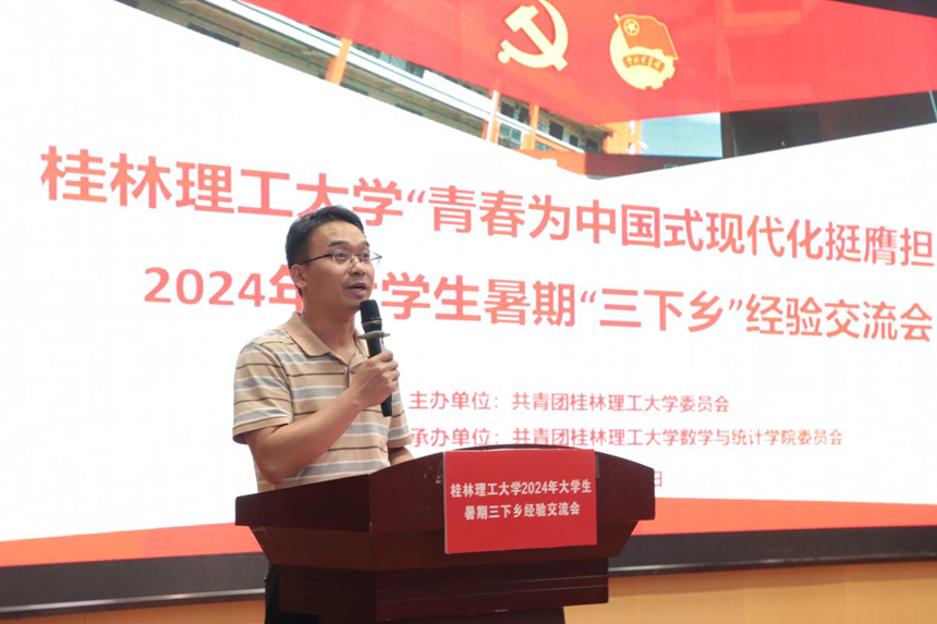 11月12日,太阳集团城网站2017在雁山校区图书馆报告厅成功举办了以“青春为中国式现代化挺膺担当”为主题的2024年大学生暑期“三下乡”社会实践经验交流会。此次活动旨在通过分享今年优秀项目的经验,激发同学们对2025年“三下乡”活动的热情与了解,进一步推动大学生深入基层、服务社会。创新创业学院专职副院长唐红兵,数学与统计学院党委副书记钟立军,校团委科技实践部副部长卢桂盛,以及二级学院团委书记、副书记代表出席本次活动。