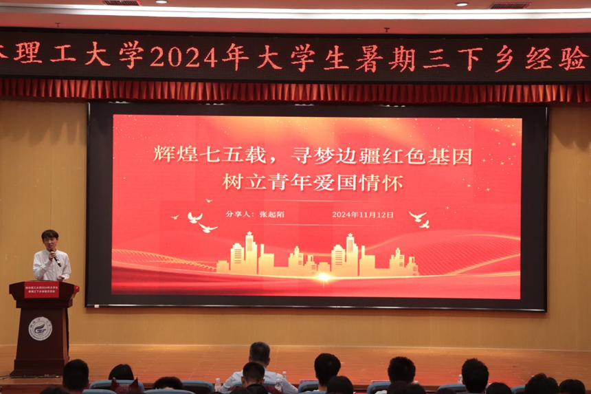 随后,来自化学与生物工程学院、数学与统计学院、太阳集团城网站2017、机械与控制工程学院和环境科学与工程学院实践团五支优秀的“三下乡”社会实践团队代表依次上台进行了经验分享。他们围绕民族团结、乡村振兴、中华文化传承、爱国主义教育等主题,讲述了自己在实践活动中的所见所闻、所感所悟。通过生动的案例和感人的故事,同学们深刻感受到了社会实践的魅力和意义。