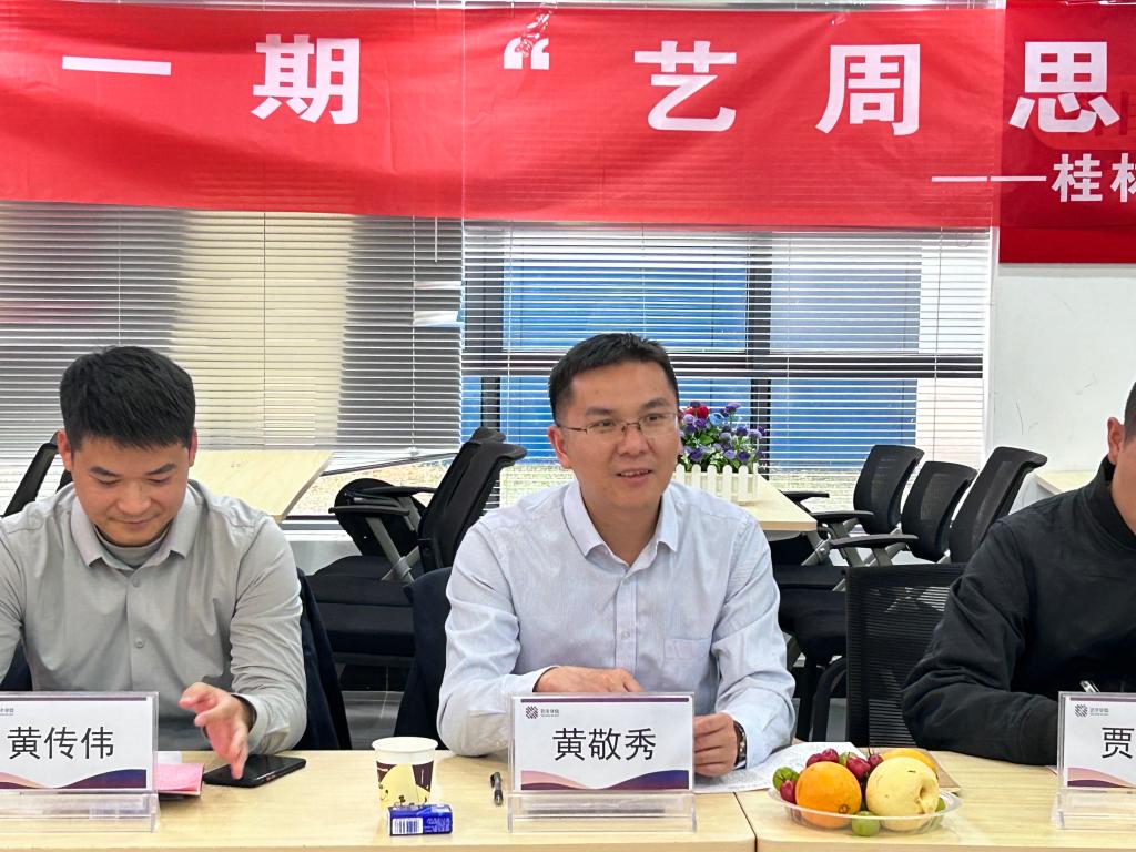 11月27日,艺术学院在雁山校区明园“一站式”学生社区思政大讲堂举办“艺周思享绘”第一期交流分享活动:书记与学生骨干面对面,活动主题为“凝心聚力共绘青春蓝图,挺膺担当助力学院发展”。学院党委书记黄敬秀,党委副书记、纪委书记黄传伟出席会议,专职组织员贾浩雨、研究生辅导员周红阳及艺术学院学生会、研究生会学生骨干代表参加会议。座谈会由学院团委副书记(主持工作)梁璇主持。