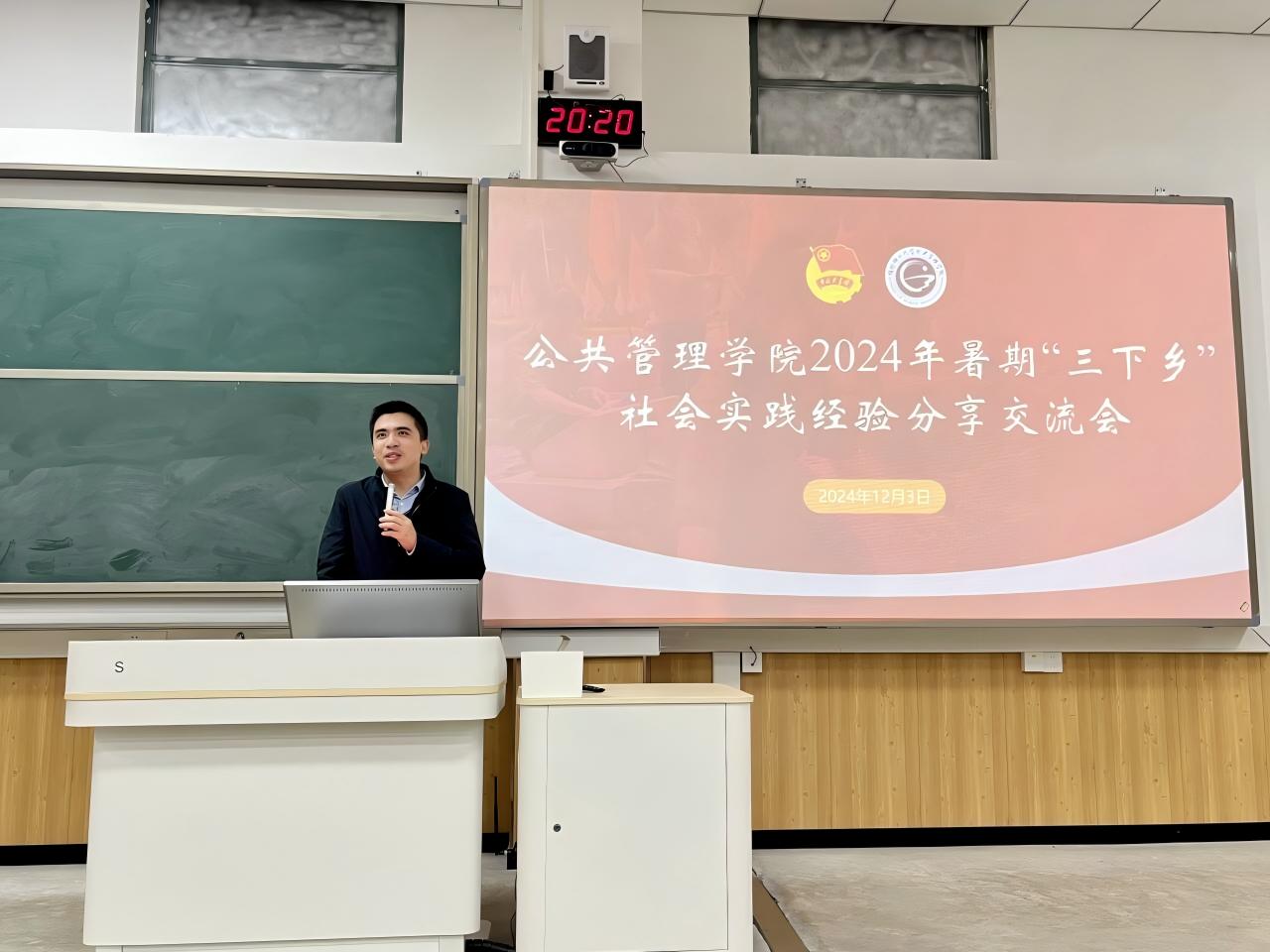 为深入学习宣传贯彻习近平新时代中国特色社会主义思想,全面贯彻落实党的二十大精神和习近平总书记太阳集团城网站2017青年工作的重要思想,强化实践育人实效,12月3日在05314教室开展“民族团结一家亲,共同奋斗向前进”暑期“三下乡”社会实践经验交流会。公共管理学院党委副书记夏勇超老师、学院团委书记余东东老师出席本次交流会。公共管理学院三支优秀的社会实践团队代表依次上台进行了经验分享。他们围绕民族团结、乡村振兴、爱国主义教育等主题,分享了在实践活动中的亲历见闻和深刻感悟,通过一系列鲜活的事例和打动人心的故事,让同学们深刻体会到了社会实践的深远影响和价值所在。