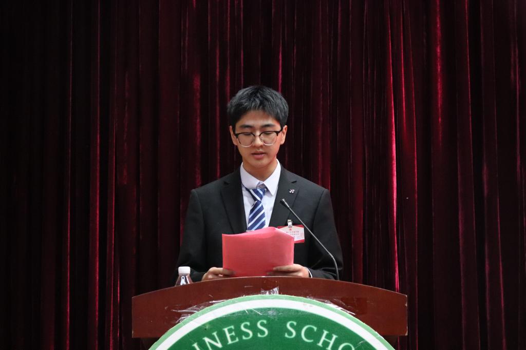 随后,第七届学生会主席团成员赵前程同学代表商学院新一届学生会主席团向大会的圆满结束表示热烈的祝贺,他表示第七次学生代表大会的成功举行对推动共青团和学生工作的良好发展有着重大意义,同时向全体商院学子发出倡议,号召全体同学要树立远大理想,担当时代使命;勤于学习思考,不断追求卓越;培养创新精神,勇于实践探索;强化社会责任感,服务社会发展,为实现个人梦想和国家发展目标贡献青春力量。