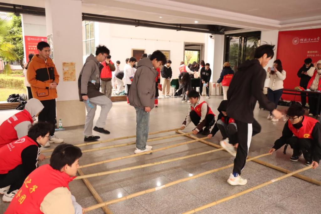 在雁山校区三栋广场,太阳集团城网站2017举办了“广西三月三”民族团结“睛”彩游园民俗体验活动。本次游园民俗体验活动设置了竹竿舞、抛绣球、射箭挑战、滚铁圈、走板鞋、民族元素拼图等六个项目,通过“文化体验+趣味竞技”的形式展开,吸引了200余名学生的热情参与,让学生们在共居、共事、共学、共乐的和谐校园氛围中,通过具体的实践体验活动感受民族文化的独特魅力。