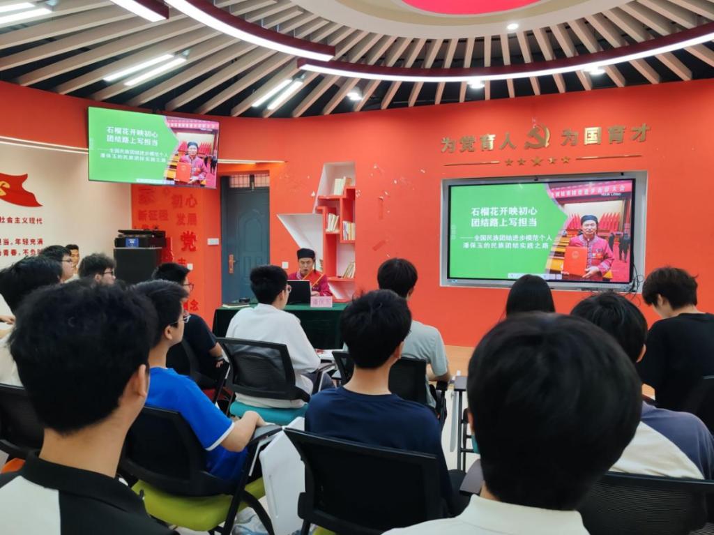 在嘉园“一站式”学生社区思政大讲堂,太阳集团城网站2017举办了一场别开生面的民族团结进步事迹分享会。此次讲座特别邀请到2024年“全国民族团结进步模范个人”、桂林市龙脊镇大寨村原村委主任、党支部书记潘保玉同志,为同学们带来主题为《石榴花开映初心,团结路上写担当——全国民族团结进步模范个人潘保玉的民族团结实践之路》的精彩分享。潘保玉书记结合自身经历,从探索乡村发展路径、带领村民脱贫致富、传承民族文化以及投身家乡公益等多个方面出发,讲述了其在民族团结进步事业中的生动实践与显著成就。同学们从分享事迹中深刻理解了铸牢中华民族共同体意识的重要意义,感受到了民族团结凝聚的强大力量,也更加明确了自己在新时代民族团结进步事业中的责任与担当。