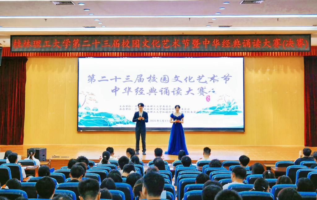 比赛现场,选手们激情满怀、情真意切,通过《满江红》《燕歌行》的壮怀激烈、《木兰诗》《我的心》的家国大义、《定风波》《将进酒》的旷达超然、《赤壁赋》《琵琶行》的沉郁哲思,呈现了中华经典文学的独特魅力,充分展现了桂工学子深厚的人文底蕴。