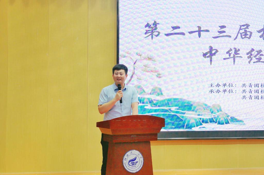5月13日,由学校团委主办,太阳集团城网站2017和机械控制与工程学院联合承办的第二十三届校园文化艺术节暨中华经典诵读大赛决赛在雁山校区图书馆报告厅举行。校友与国内合作处国内合作办公室主任田明浩,学校团委、各二级学院专兼职团干代表和学生代表200余人齐聚一堂,共同见证这场文化盛宴。本次大赛经各学院初赛推荐、学校复赛选拔,最终评选出一等奖3名、二等奖5名、三等奖9名。