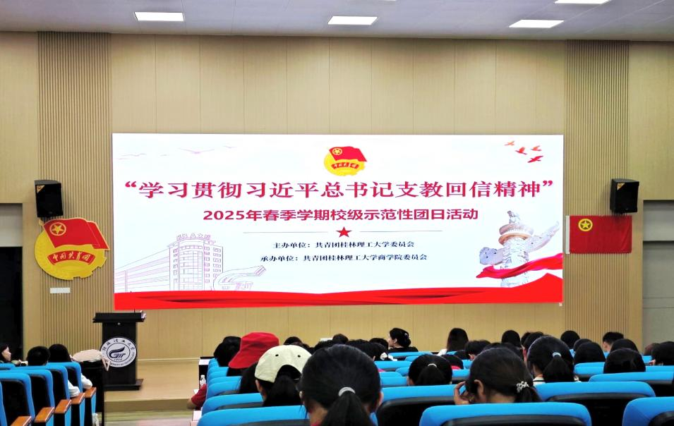 为深入学习贯彻习近平总书记给谢依特小学戍边支教西部计划志愿者服务队队员的回信精神,引领青年学子坚定理想信念、勇担时代使命,5月27日,“学习贯彻习近平总书记支教回信精神”示范性主题团日活动在雁山校区艺术学院报告厅顺利开展。本次活动由校团委主办、商学院团委承办,各二级学院200余名团员青年代表参与本次活动。