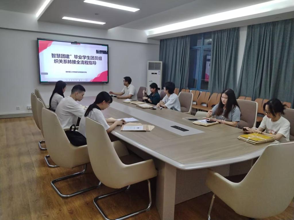 为规范2025届毕业生团员组织关系转接工作,确保转接流程高效有序,6月19日晚,旅游与风景园林学院在雁山校区04509会议室组织召开专题培训会。全体毕业班团支书及团委学生会组织部成员参会,学院团委书记周剑凯主持会议并做培训。