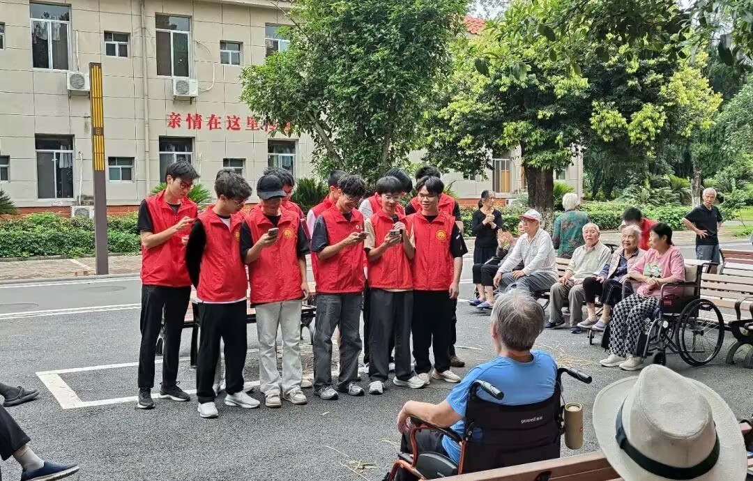 志愿者们还为老人们表演了《勘探队员之歌》《强军战歌》《团结就是力量》等红色歌曲合唱,还有同学表演了“军体拳”,大家在歌声与拳术中重温峥嵘岁月。现场气氛热烈,鼓掌不断。“看到这群孩子们充满朝气的样子,像极了当时我们年轻的时候。”爷爷感动地说。他们为表达喜悦还给我们表演了《歌唱祖国》。