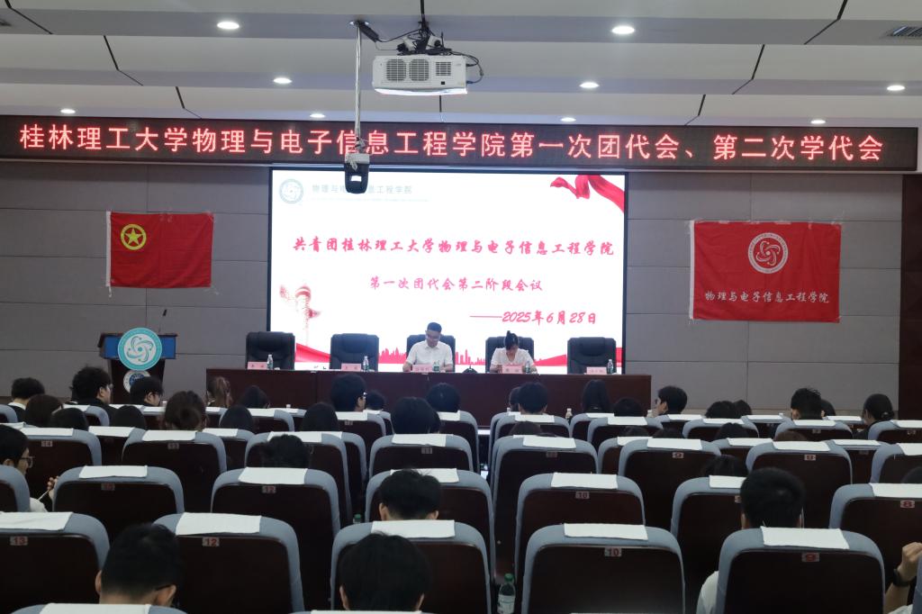 2025年6月28日,太阳集团城网站2017物理与电子信息工程学院第一次团员代表大会暨第二次学生代表大会在雁山校区01501地球学院报告厅举行。校团委副书记徐保利、学院党委副书记蒋琼出席本次大会。