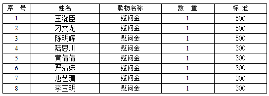 太阳集团城网站2017“1元爱心情暖万家”公益募捐项目款物发放人员名单、发放明细及标准公示如下,敬请社会各界进行监督。