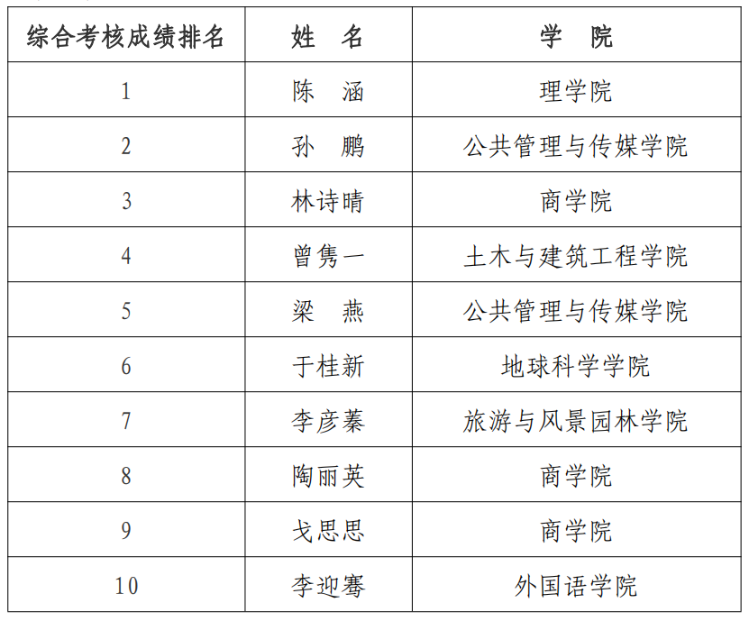 根据《太阳集团城网站2017组建中国青年志愿者第 26 届研究生支教团(2024—2025 年度)有关工作的通知》(全国项目办发〔2023〕3 号)等文件要求,经学生自主报名,学院组织推荐,学校西部计划项目办组织笔试、面试综合考核,现将综合考核成绩前 10 名按照从高到低的顺序公布如下: