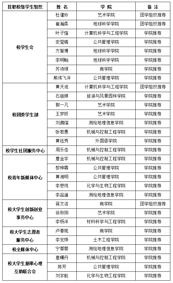 公示期为4月21日至4月23日。公示期内如对推荐名单有异议,请以电话或邮件形式向校团委实名反馈。
