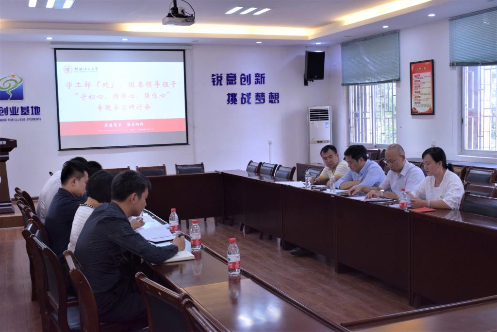 根据“不忘初心、牢记使命”主题教育工作部署,10月9日下午,学校学工部(处)、团委党支部在屏风校区大学生创新创业基地301会议室召开“守初心、持恒心、强信心”专题学习研讨会,会议由支部副书记李雨主持。