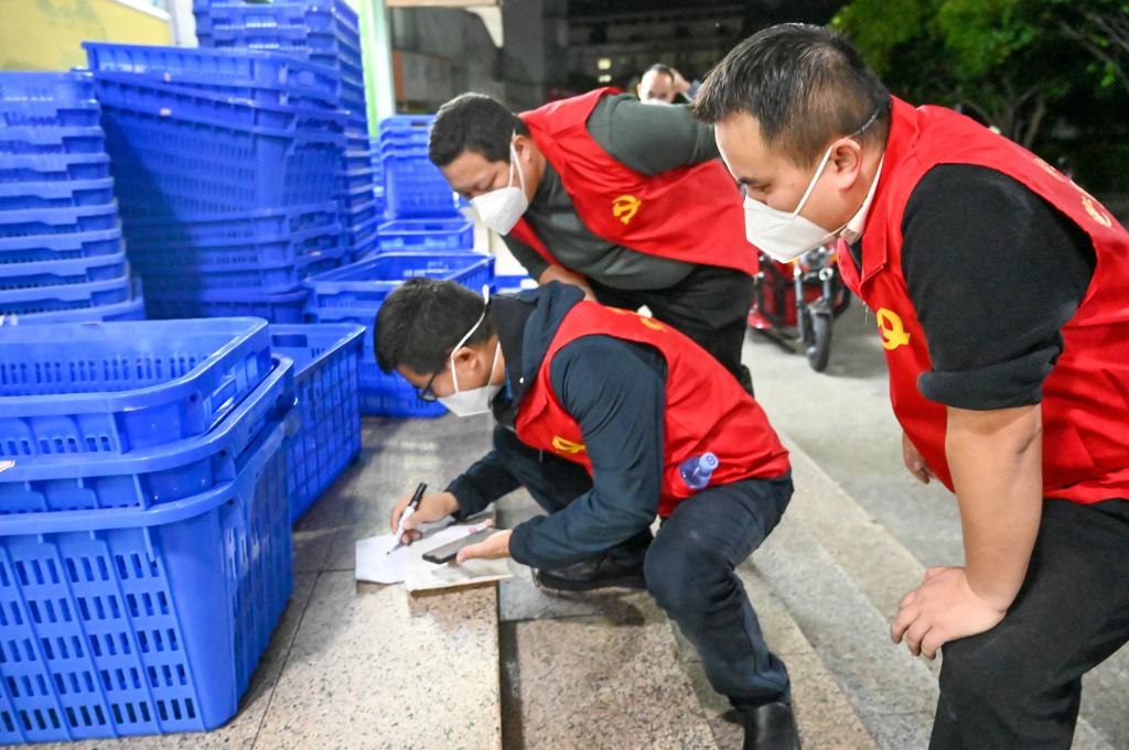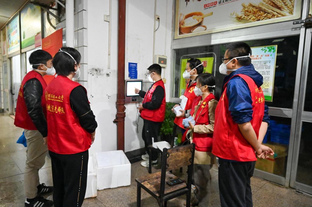 “屏风6栋需要的500个核酸检测拭子已经在路上了,预计10分钟后到检测台”“封箱纸和转运箱在路上了,请稍等,马上送到!”“请各位同学佩戴口罩,尽快到楼下做核酸。感谢同学们对学校防疫工作的理解与支持!”“请同学们保持两米安全距离,有序排队扫码”……党员队伍肩负着指挥员、协调员、登记员、巡逻员、宣传员等多重角色,建立涉疫风险应急处置机制,在各部门的默契合作下,各环节严密有序,高效完成全校的疫情防控综合协调工作。