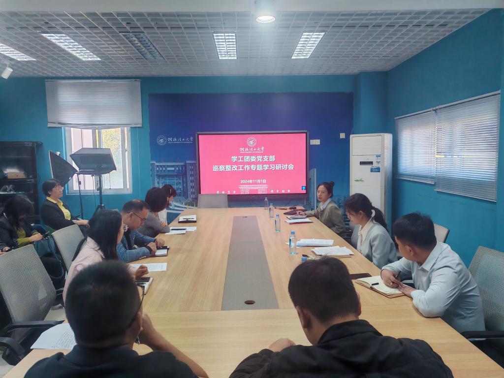 为全面落实学校党委巡察反馈意见整改工作,扎实推进党支部标准化规范化建设,不断提升党支部创造力、凝聚力、战斗力,11月1日上午,学工团委党支部在雁山校区行知楼B418召开巡察整改工作专题学习研讨会,支部全体党员参会,会议由支部纪检委员莫媛同志主持。